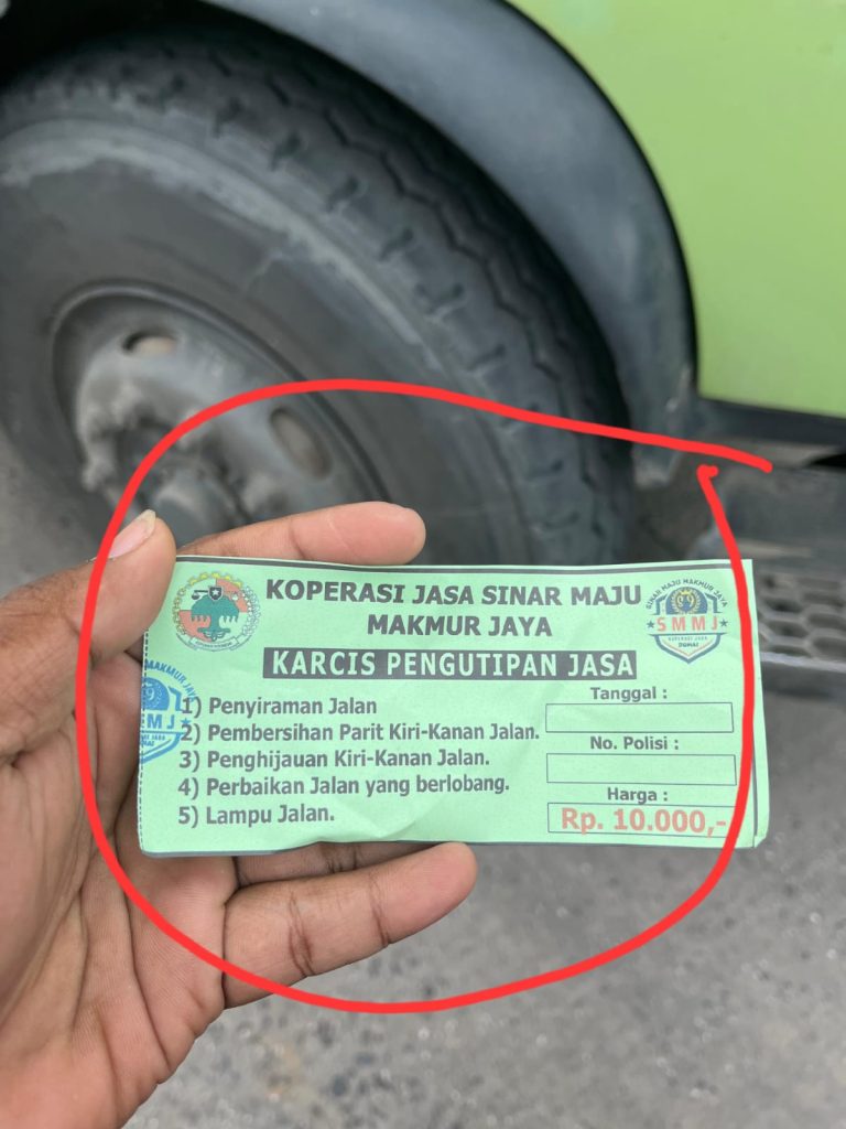 Namun tidak menjadi patokan. bagi sopir yang menyanggupi Rp. 2000 hingga 5000 juga tidak dipermasalahkan diterima pihak koperasi, tapi tanpa karcis. Truk barang yang membayar menggunakan karcis koperasi rp.10.000 untuk 1 x penggunaan. Pungutan oleh koperasi diinformasikan telah berlangsung 15 hari demikian warganet membagikan informasi ini tanpa menyebutkan nama.