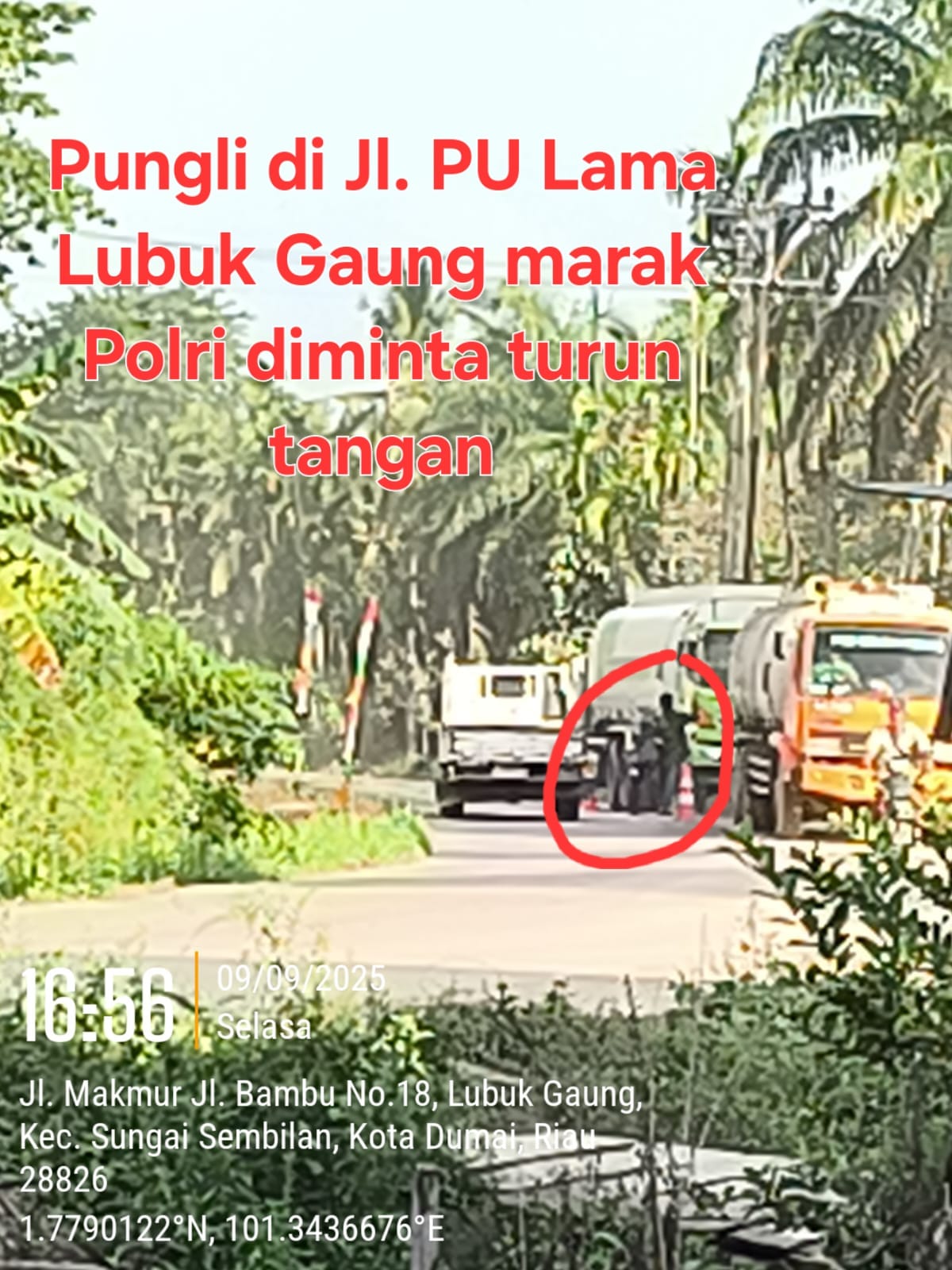 Dirmanews.com, Dumai – Selasa, 09 September 2025 beredar vidio yang mempertontonkan adanya dugaan pungutan liar (Pungli) di Jl. Lintas PU Lama Kelurahan Lubuk Gaung Kecamatan Sungai Sembilan.