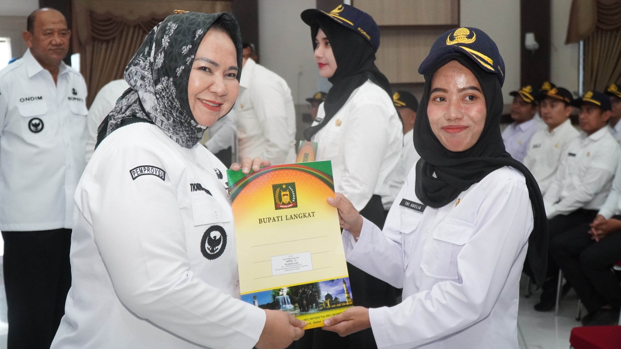 Dirmanews.com, Langkat – Sebanyak 72 Calon Pegawai Negeri Sipil (CPNS) resmi menerima Surat Keputusan (SK) pengangkatan dari Bupati Langkat H. Syah Afandin, SH, dalam sebuah acara yang berlangsung khidmat di Ruang Pola Kantor Bupati Langkat, Rabu (23/4/2025). Penyerahan SK tersebut turut didampingi oleh Wakil Bupati Langkat, Tiorita Br. Surbakti, SH.