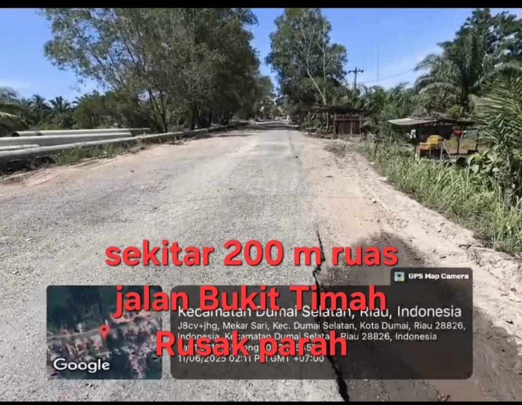 Dinas PUPR menyiapkan alat berat jenis gredor, bantuan tahap pertama PHR menyediakan material batu kerikil sebanyak 60 ton digunakan untuk penimbunan ruas jalan yang rusak, dilapangan menghindari kemacetan Satlantas dibantu warga tempatan melakukan buka tutup, ujar Kasat Lantas Polres Dumai AKP. Elva Zilla didampingi Iptu Syopiadi Kbo Satlantas Polres Dumai dan Ipda A.Karim.
