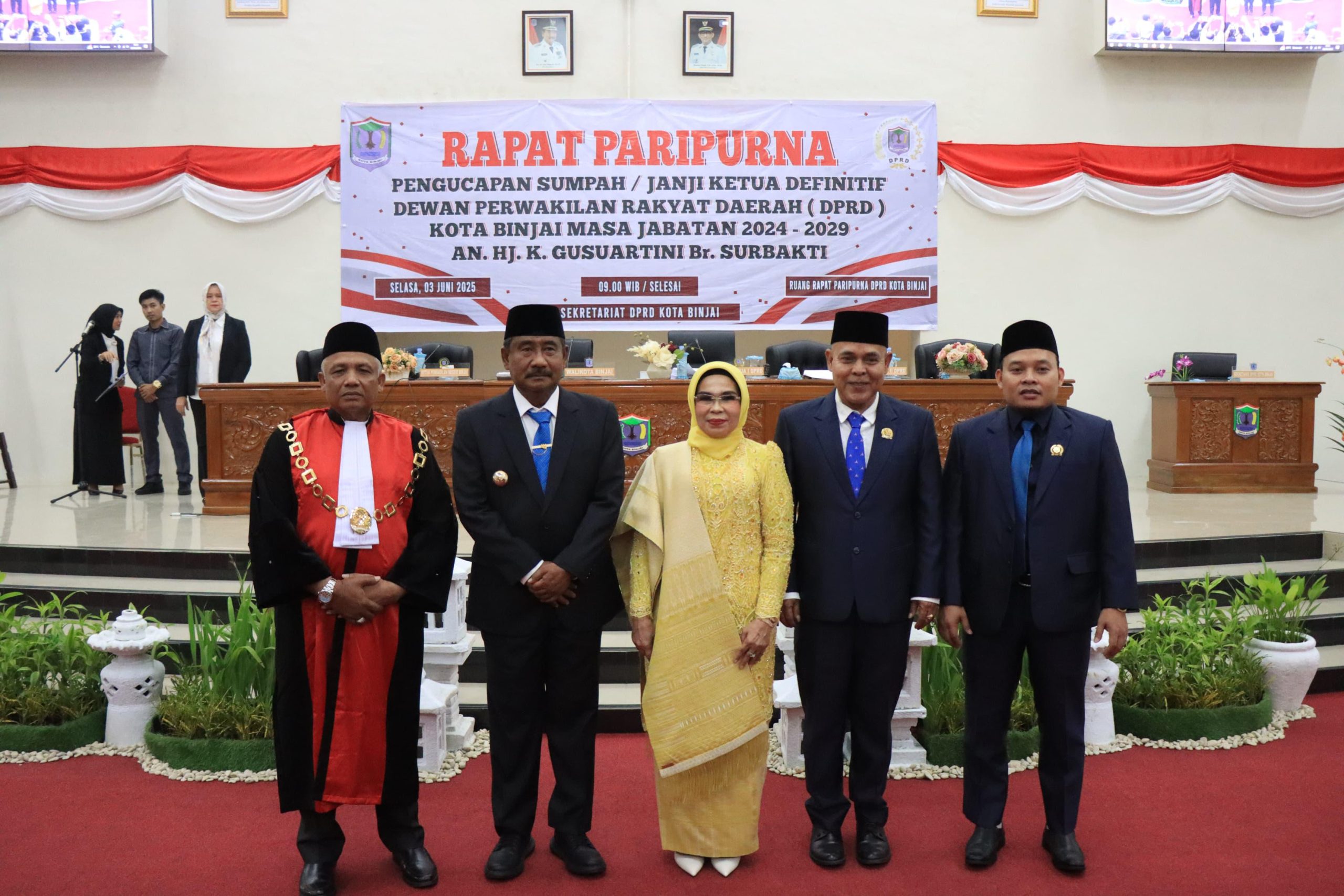“Di bawah kepemimpinan Ibu Hj. Gusuartini, kami berharap DPRD Kota Binjai semakin solid dan profesional dalam menjalankan fungsi legislasi, pengawasan, dan penganggaran,” ujar Wali Kota.