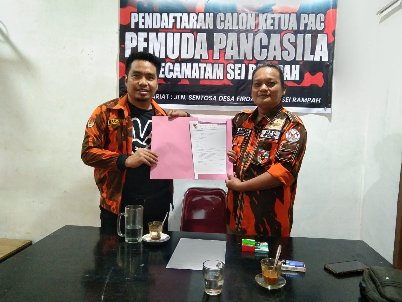 Kedatangan calon Ketua PAC PP Sei Rampah, Hasan (panggilan akrabnya) disambut baik panitia RPP dan menyerahkan formulir sebagai tanda dimulainya tahap pemilihan Ketua PAC PP Sei Rampah.