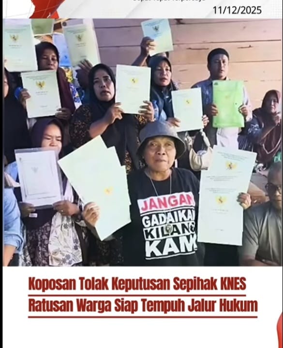Ratusan petani sawit pemilik Sertifikat Hak Milik (SHM) atas lahan ±1.700 hektar, melalui KOPOSAN, resmi melayangkan somasi kepada KNES. Somasi tersebut tertuang dalam surat Nomor: 025/KOPOSAN/PS/XII/2025, tertanggal 8 Desember 2025, yang menegaskan bahwa kerja sama yang dibuat KNES dengan PT TDB dianggap ilegal karena dilakukan tanpa persetujuan para petani pemilik lahan sah.