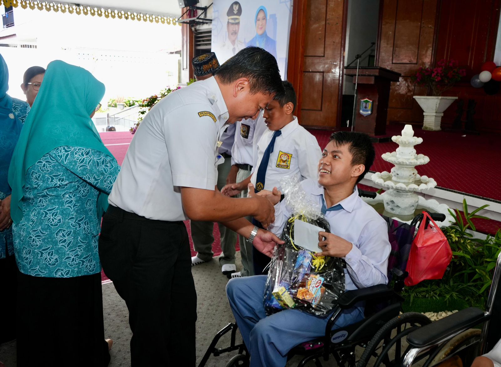 Rangkaian acara dilanjutkan dengan penyerahan bantuan kepada anak-anak yang membutuhkan serta kegiatan cap lima jari sebagai simbol gerakan Stop Kekerasan terhadap Anak.