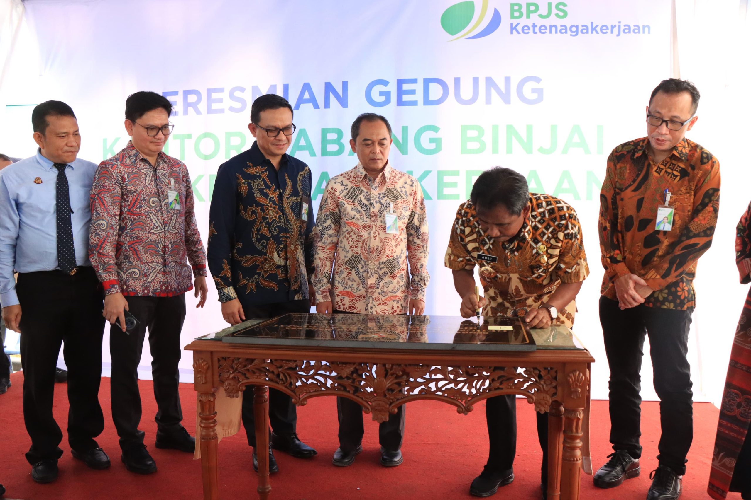 Peresmian ditandai dengan penandatanganan prasasti dan pengguntingan pita oleh Wali Kota Binjai, didampingi Kepala Kantor Cabang BPJS Ketenagakerjaan Binjai, Syarifah Wan Fatimah, beserta jajaran.